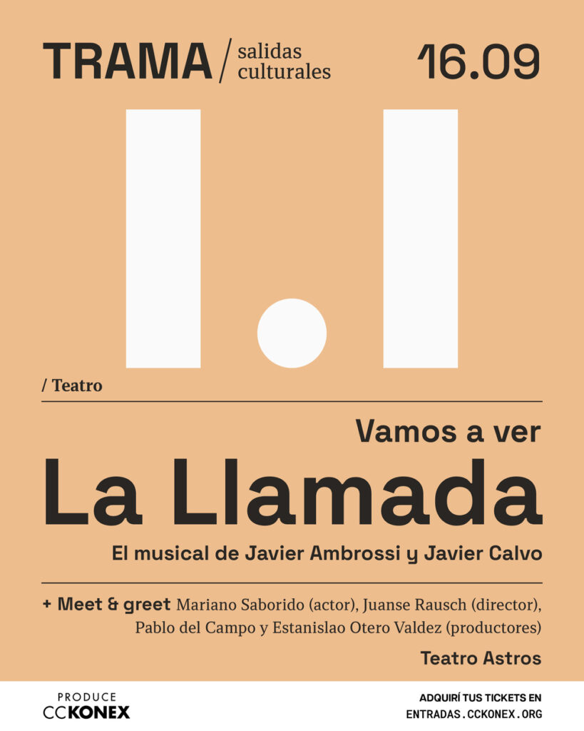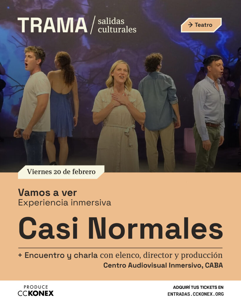 Trama es un programa de salidas culturales que te va a permitir descubrir tendencias, aprender de expertos, encontrarte con gente con tus mismos intereses y enterarte de todo lo que está pasando en la ciudad. Pensado para personas que tienen inquietudes e intereses culturales diversos. Para participar, no es necesario tener ningún conocimiento previo, sólo hace falta tener ganas de salir, conocer cosas nuevas y estar en contacto con las nuevas tendencias en el arte y el campo cultural.