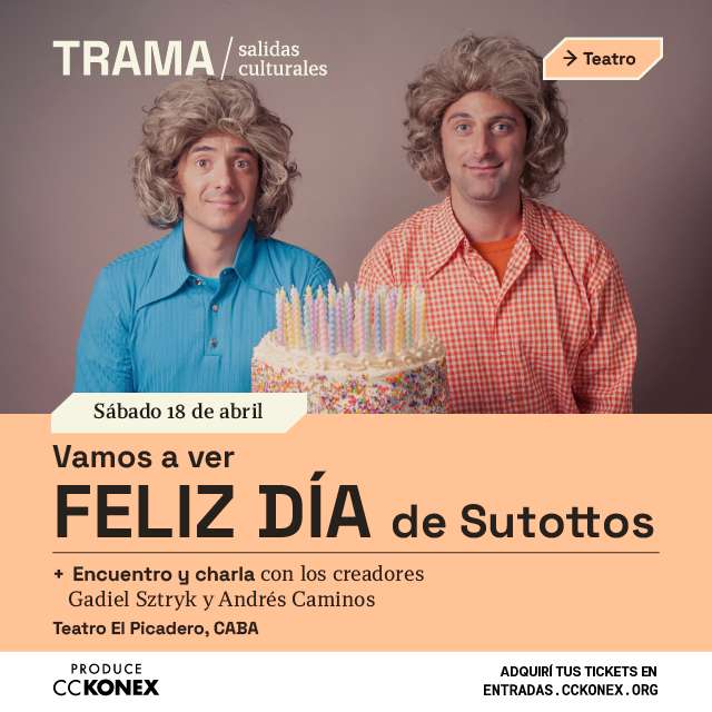 Trama es un programa de salidas culturales que te va a permitir descubrir tendencias, aprender de expertos, encontrarte con gente con tus mismos intereses y enterarte de todo lo que está pasando en la ciudad. Pensado para personas que tienen inquietudes e intereses culturales diversos. Para participar, no es necesario tener ningún conocimiento previo, sólo hace falta tener ganas de salir, conocer cosas nuevas y estar en contacto con las nuevas tendencias en el arte y el campo cultural.